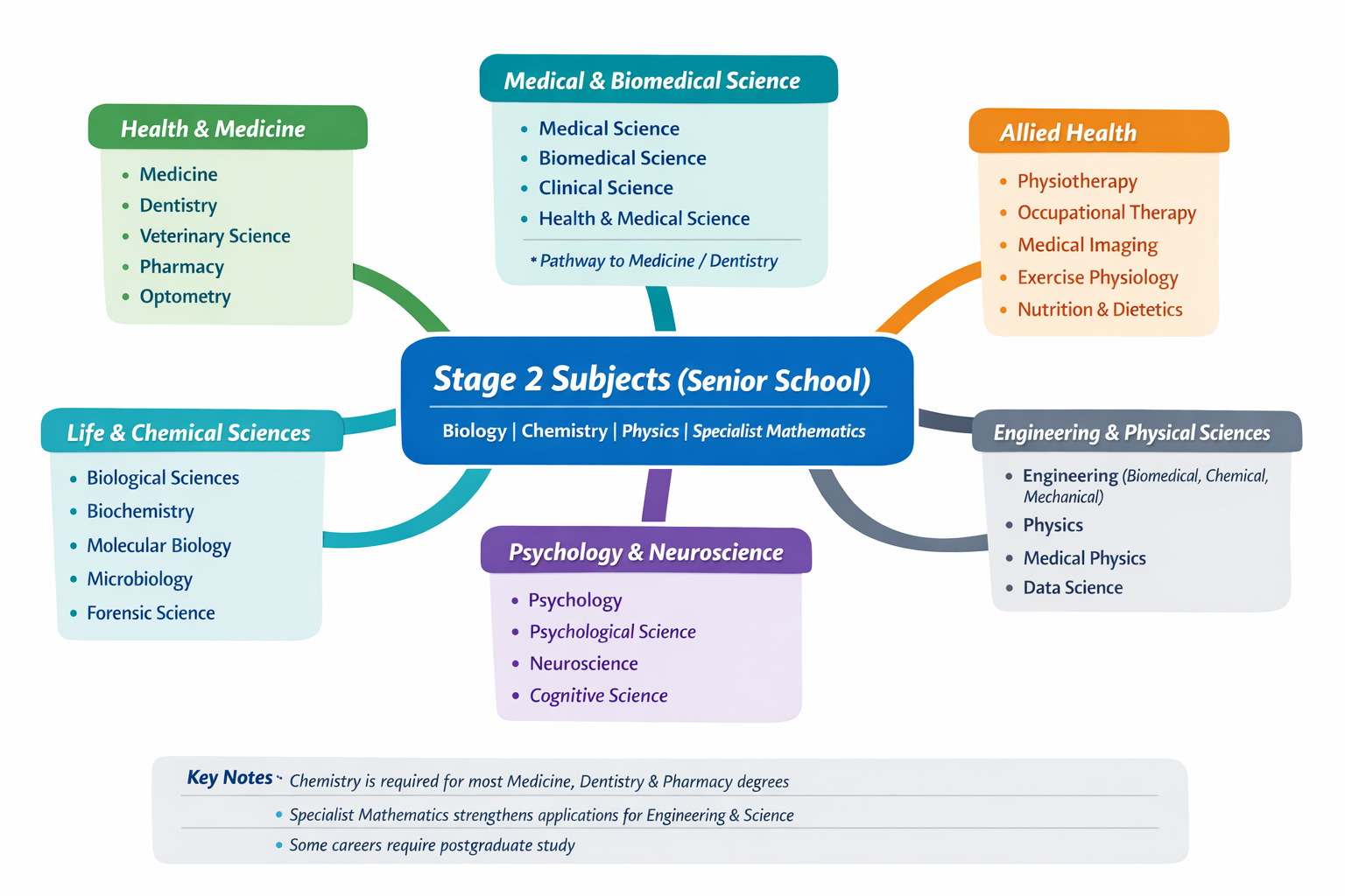 Medicine and allied health degrees are among the most competitive university programs. Success depends not only on ATAR, but also on choosing the right senior subjects early, meeting prerequisite requirements, and developing advanced scientific thinking skills.